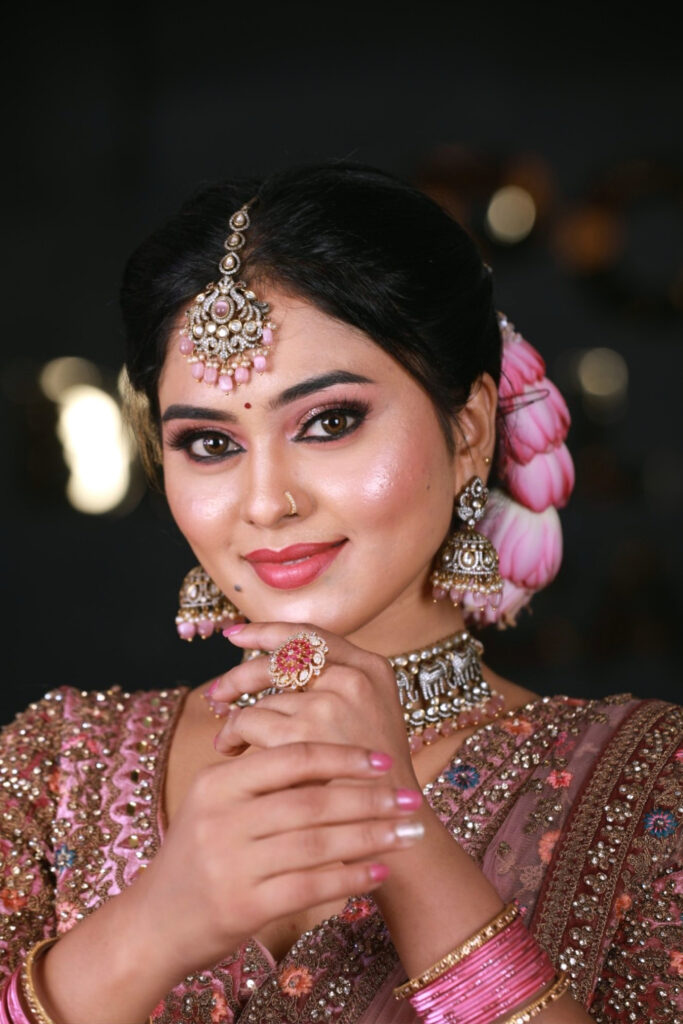 At Amutha’s Makeover, we offer a complete bridal solution under one roof. From stunning bridal makeup and elegant hairstyles to saree draping, flower accessories, and professional portfolio shoots—we take care of everything to make your big day stress-free and unforgettable. Step in as a bride-to-be, walk out ready to shine!